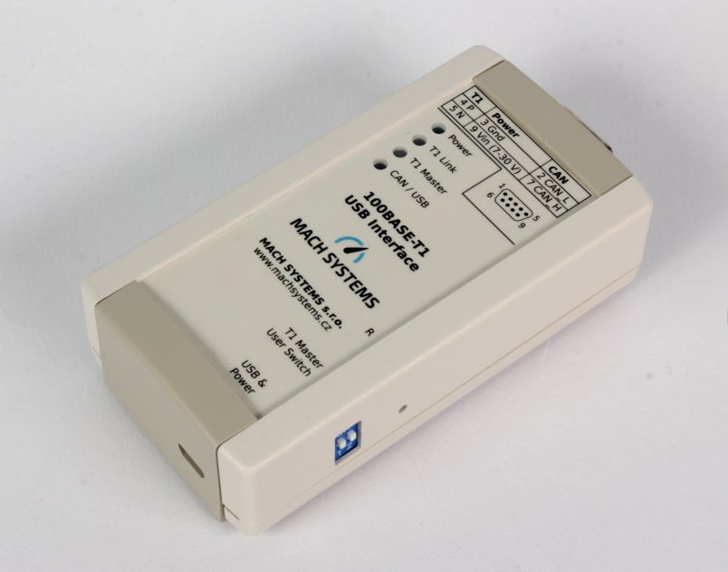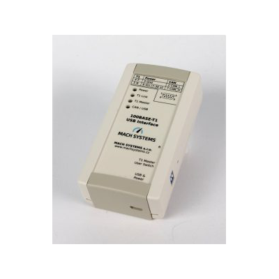 The 100BASE-T1 USB Interface (Media Converter) connects a 100BASE-T1 network to any computer with an USB port. The converter acts as an Ethernet network interface card when plugged into an USB port. The interface easily connects Automotive Ethernet devices with OPEN Alliance BroadR-Reach (OABR) port, such as cameras or ECUs, directly to any PC without a need of an on-board network card.
